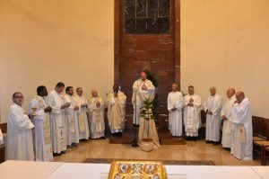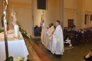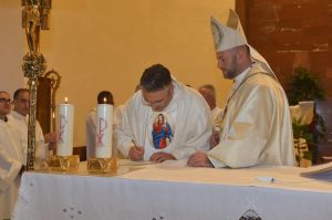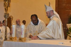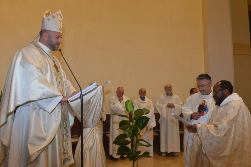 Passaggio di consegne a San Michele Arcangelo, dove si è tenuta ieri la solenne Eucaristia con la quale il vescovo Vito ha immesso nel ministero pastorale don Jean-Baptiste Sano e don Maurizio Iorio come co-parroci della parrocchia del Borgo cittadino, assieme alle parrocchie delle frazioni confinanti: quella di Ognissanti a Casette e quella di San Giovanni Battista di San Giovanni Reatino e Maglianello Basso. Tre comunità unite in un percorso di comunione e collaborazione che mons. Piccinonna ha raccomandato ai numerosi fedeli presenti alla celebrazione. Al primo banco anche i familiari di don Maurizio, campano giunto nel clero reatino che già collaborava a San Michele con don Benedetto come vice parroco. Don Jean-Baptiste, nativo del Rwanda, già curava Casette assieme alla parrocchia di Villa Reatina. Dalle comunità il ringraziamento ai parroci uscenti, don Benedetto per i suoi 38 anni di servizio a San Michele Arcangelo, e don Nicola per tre anni a San Giovanni Reatino.